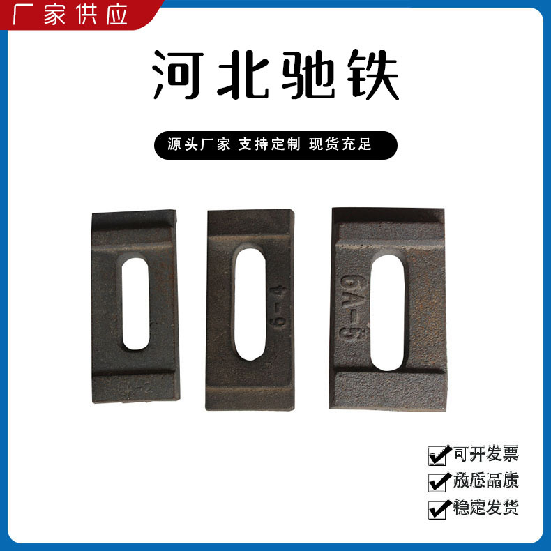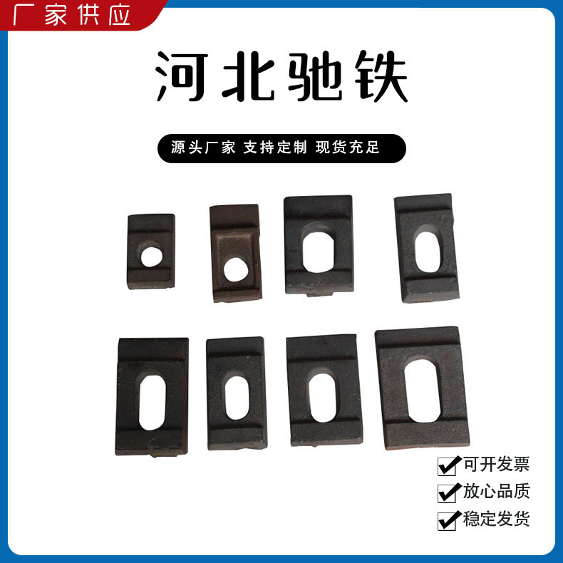 主要產(chǎn)品:鐵路配件、行車配件、工礦配件、魚尾板、道釘、壓軌器、軌道壓板、軌距拉桿、護軌扣板、T型螺栓、魚尾螺栓、彈條、軌距擋板
